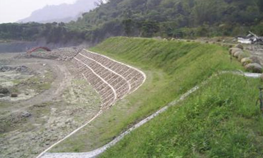 水平铺设在土体内的旭域单向土工格栅保证边坡整体稳定,在边坡坡面处分层铺设旭域土工格室,土工格室内可植草绿化,即提高了坡面局部稳定性又美化了环境。